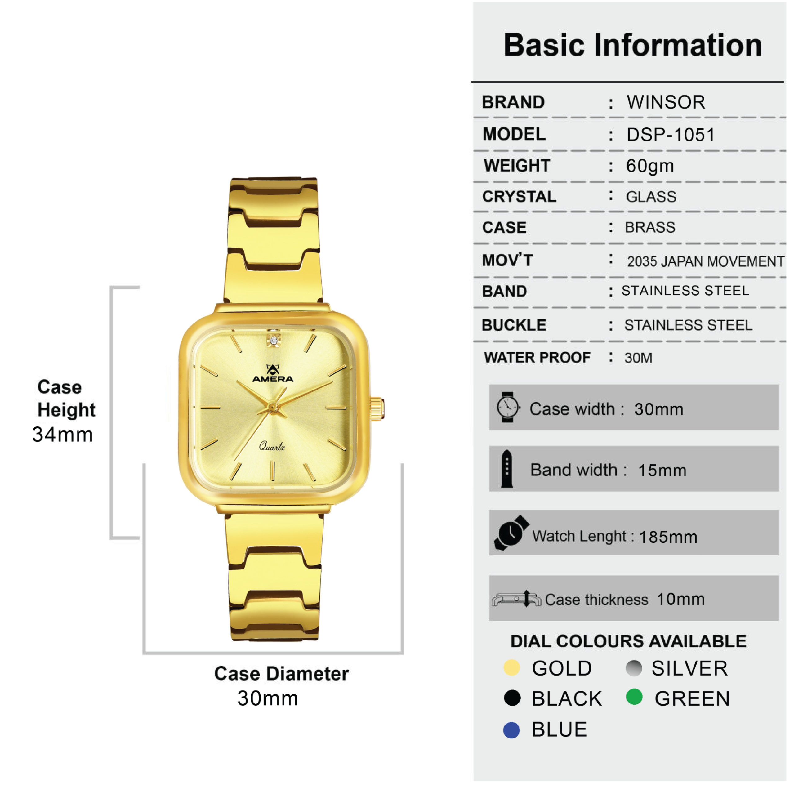 The AMERA Gold Square Classic Edition is a symbol of timeless elegance. Featuring a polished gold finish and a clean dial, this watch delivers a luxurious yet simple look.
