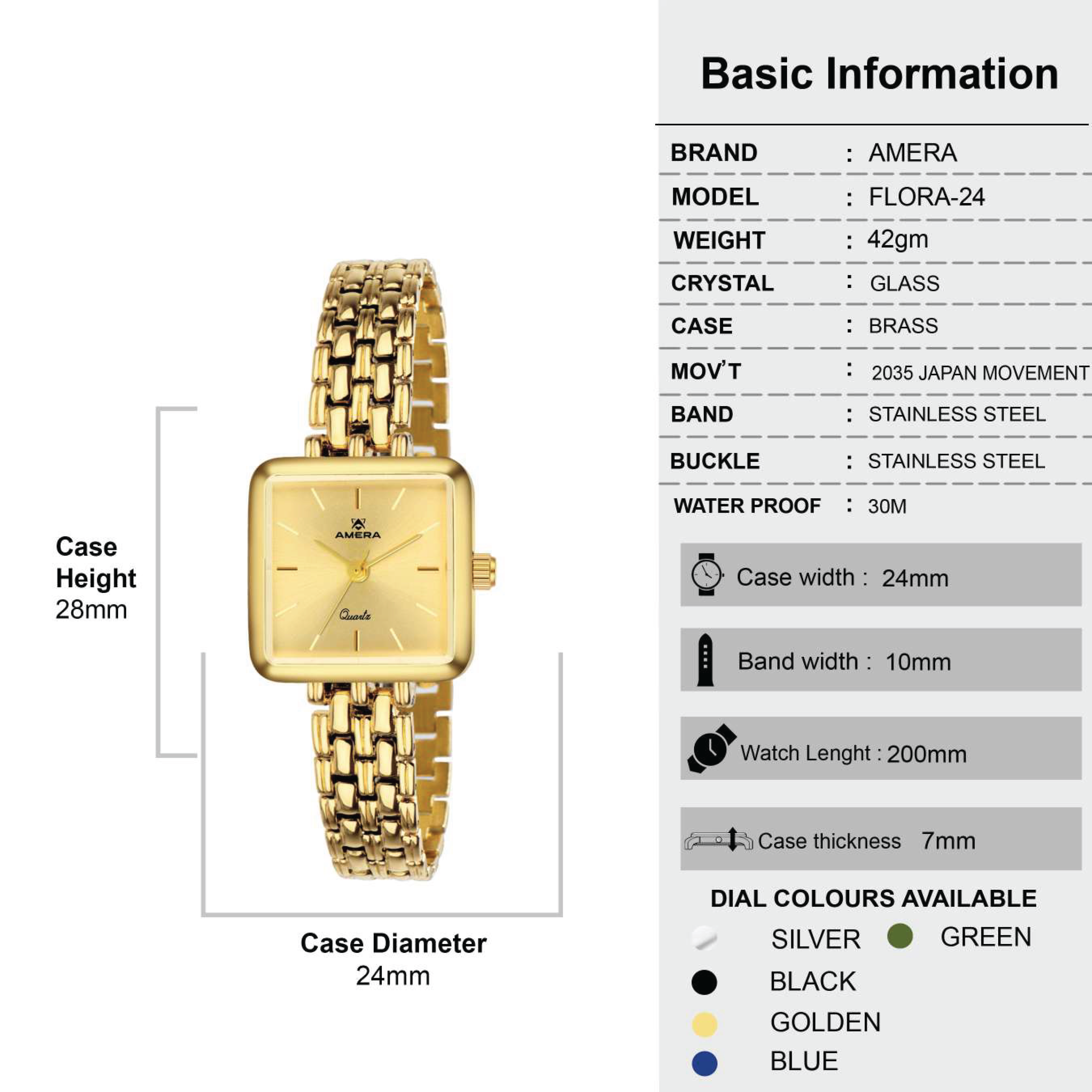 The AMERA Gold Square Edition is a refined piece that embodies simplicity and luxury. With its polished gold case and clean dial, it offers a timeless design suitable for any occasion.