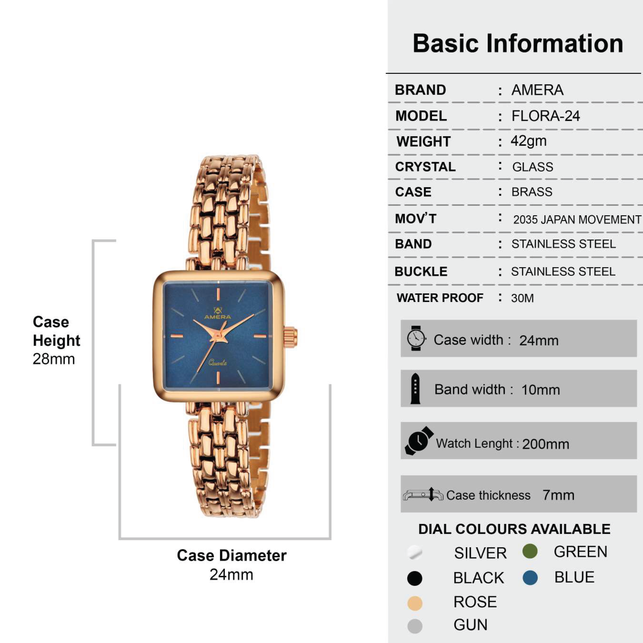 The AMERA Rose Gold Blue Square Edition stands out with its rich blue dial and elegant rose gold frame. The combination creates a unique balance of color and luxury.