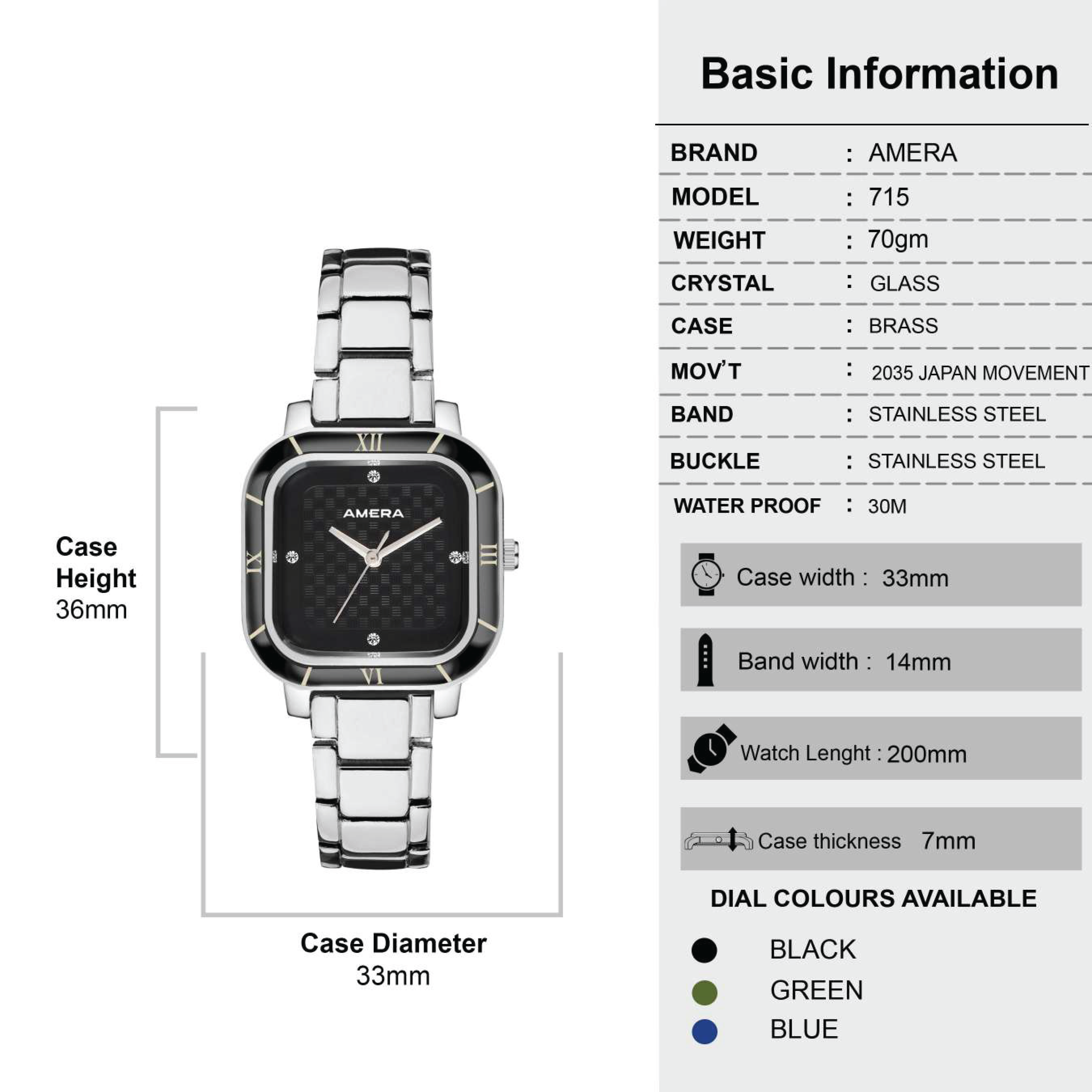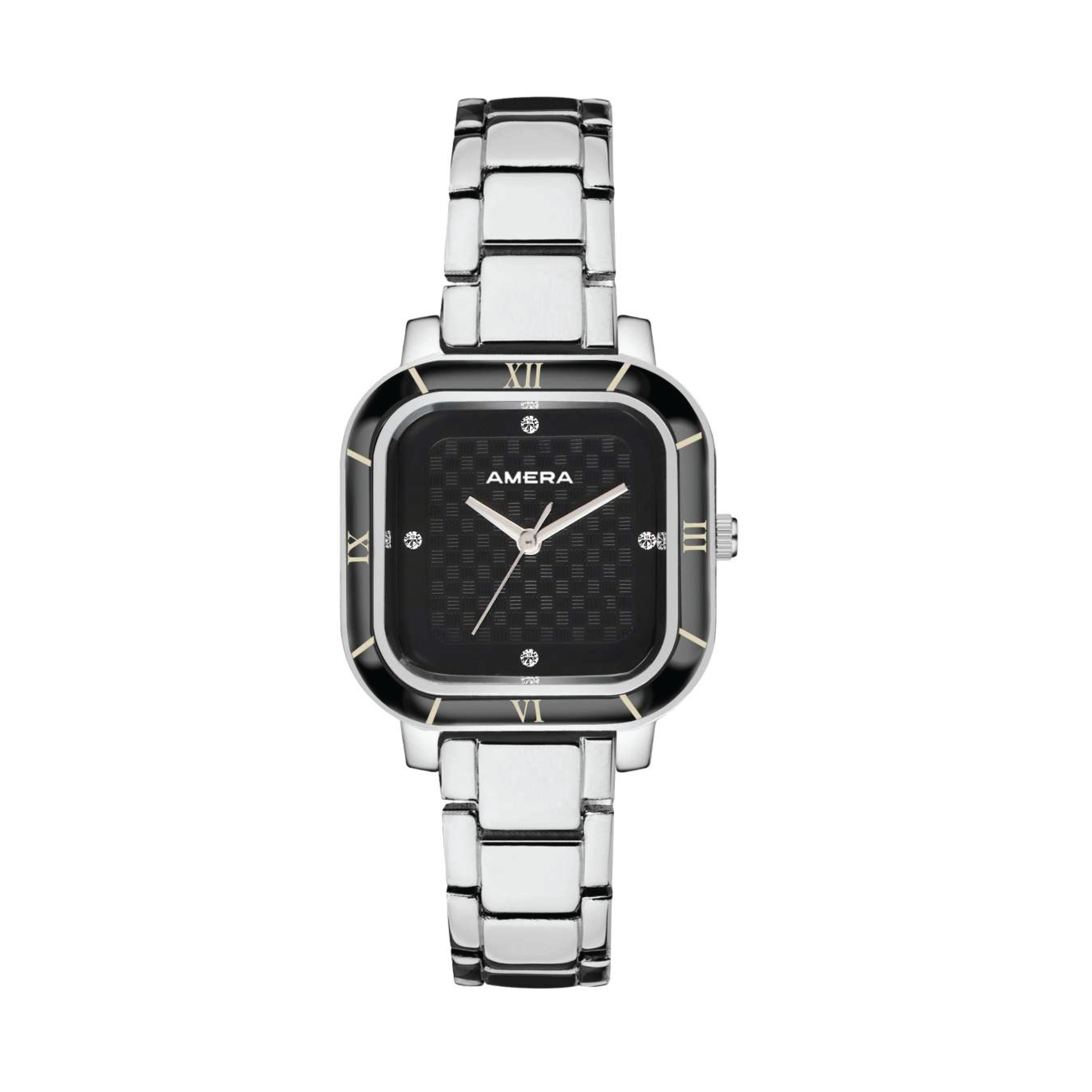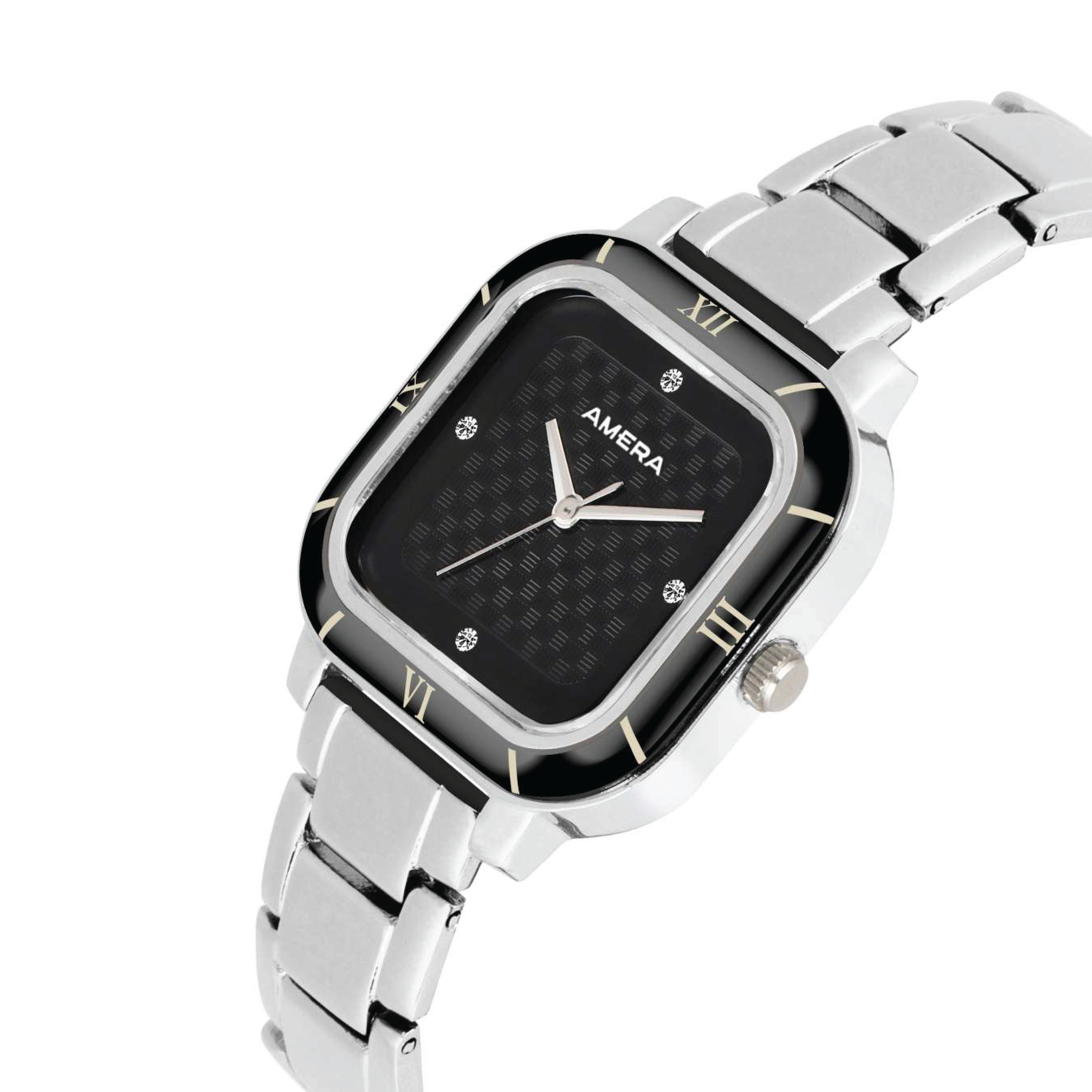 The AMERA Silver Black Textured Edition delivers a modern and confident style. Its polished silver case contrasts beautifully with the deep black textured dial, creating a clean yet bold appearance.