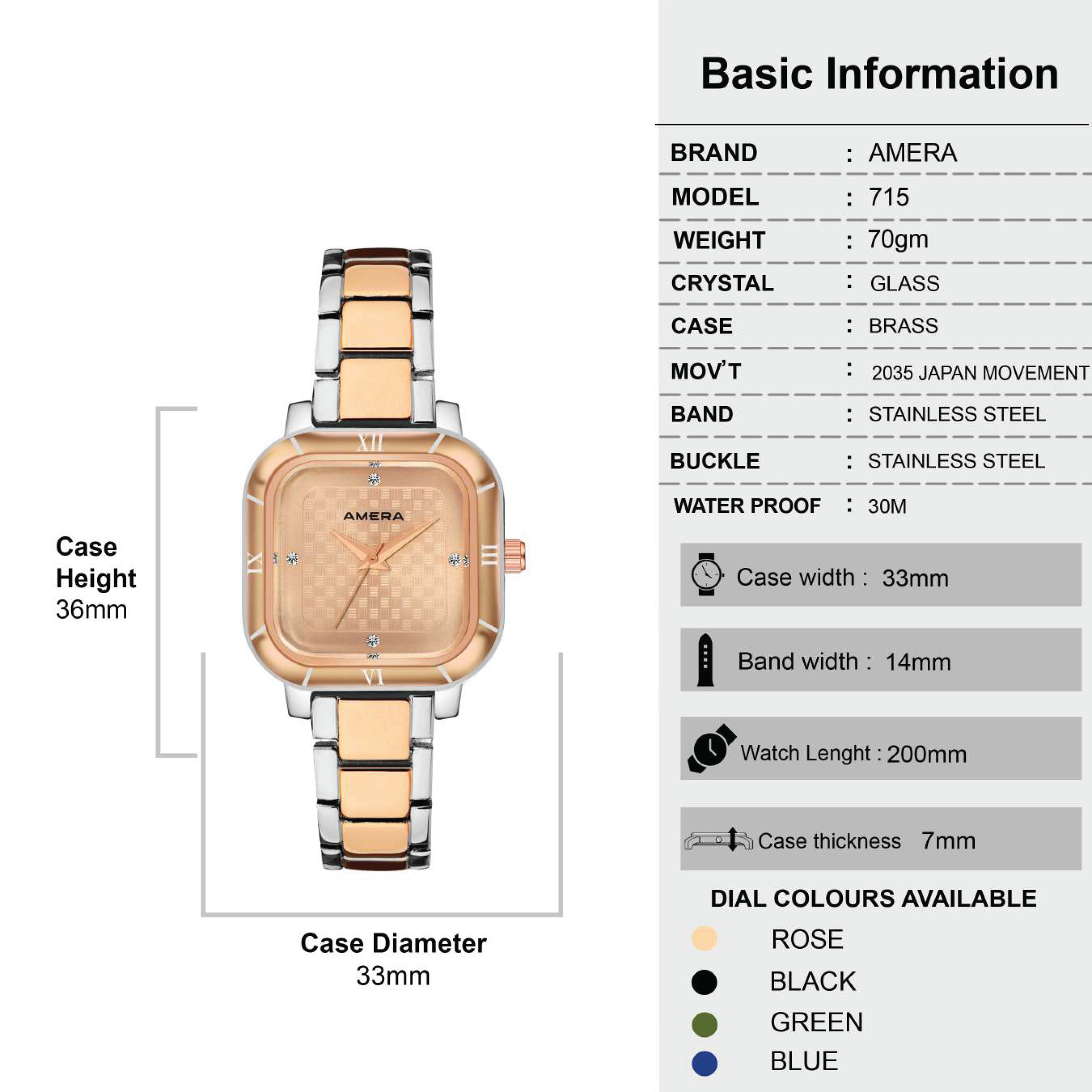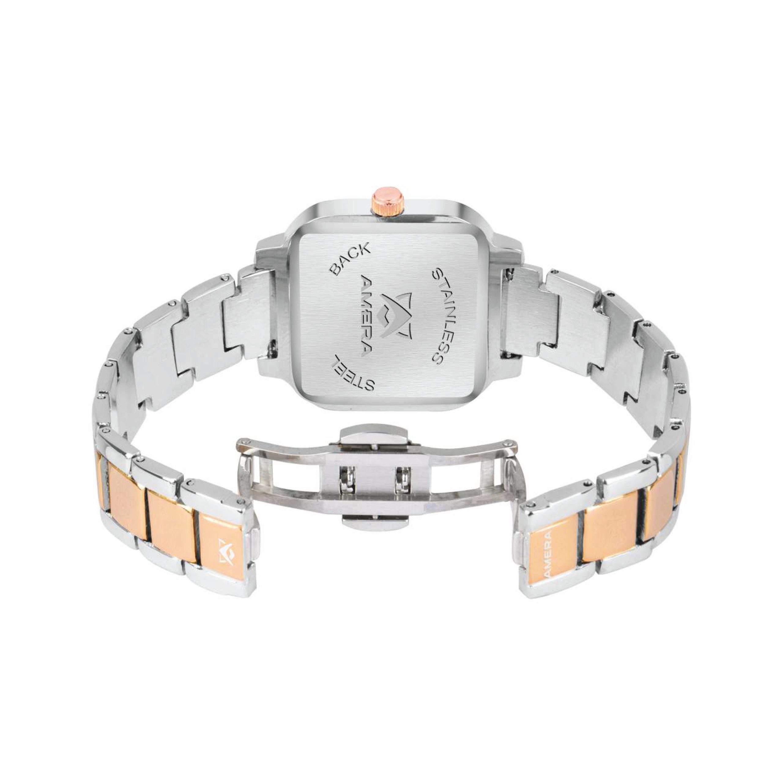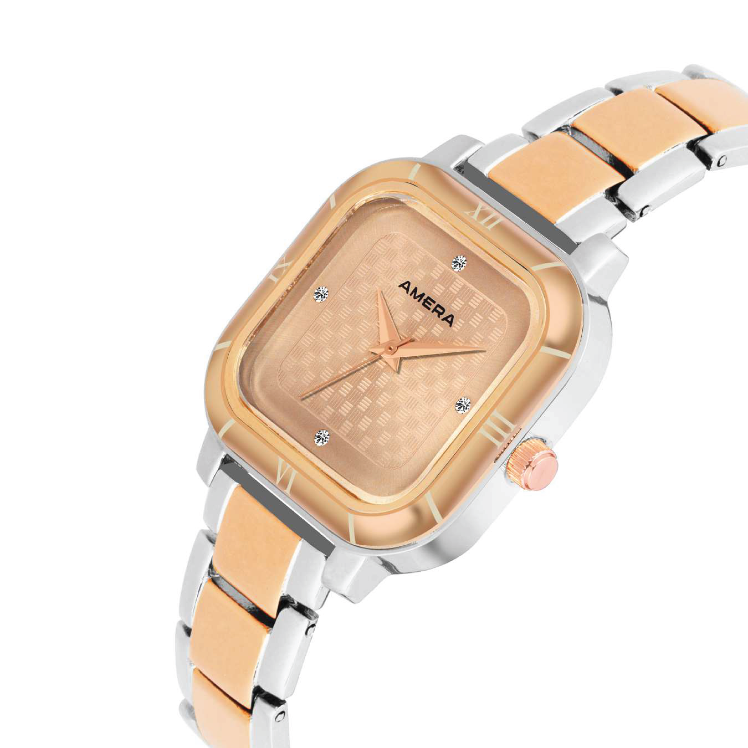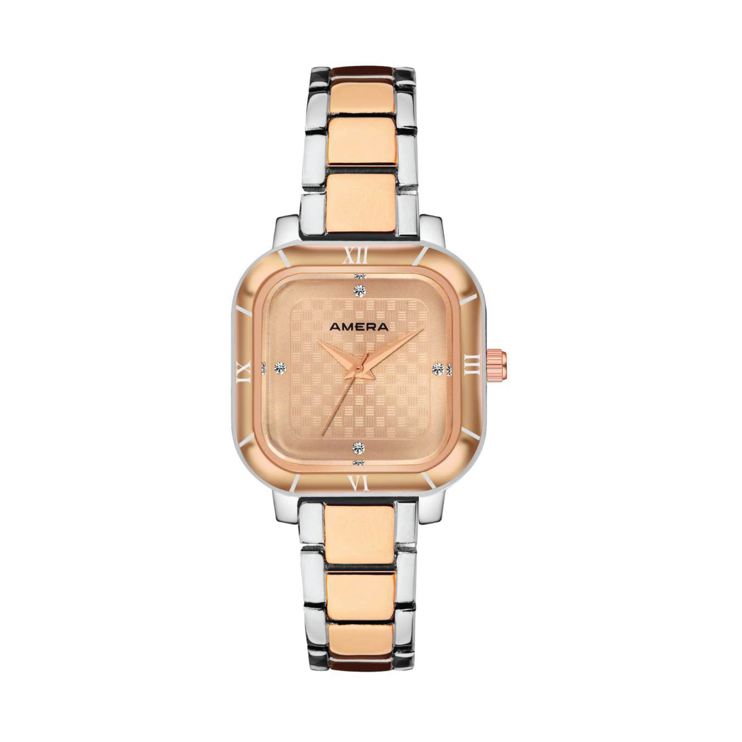 The AMERA Two-Tone Rose Gold Textured Edition offers a soft, feminine elegance with its rose gold accents and silver tones. The textured dial enhances its visual appeal while maintaining a clean and modern aesthetic.