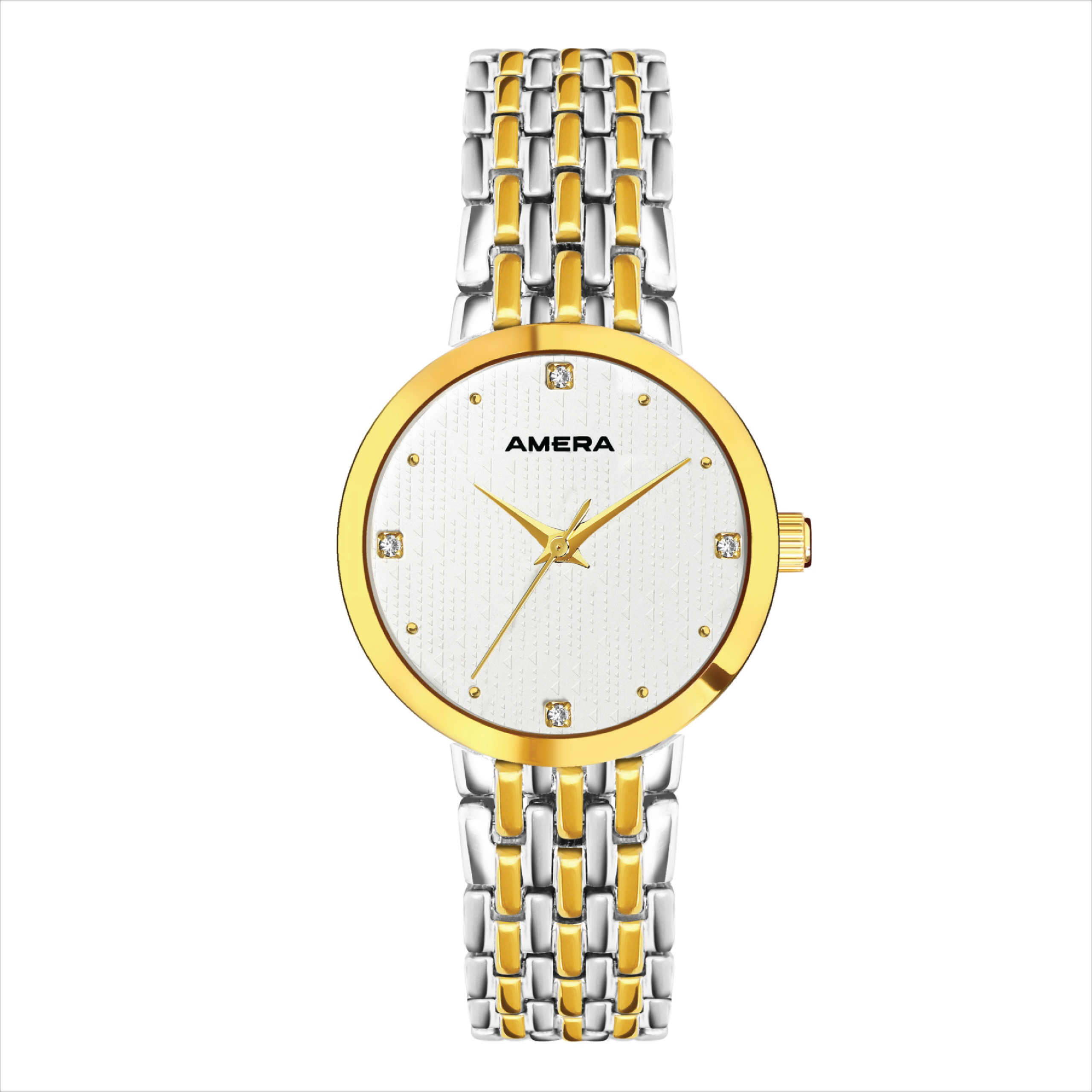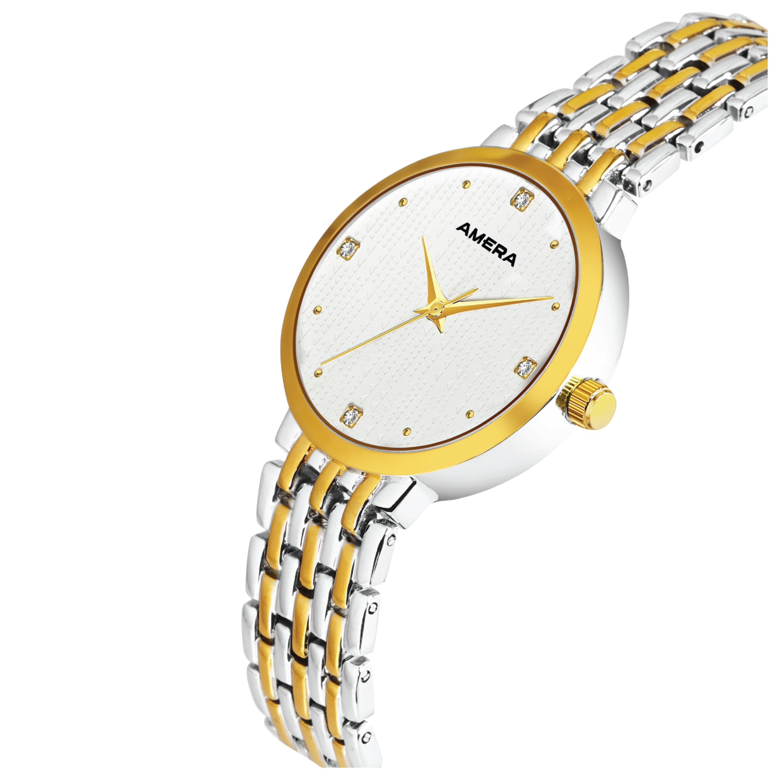 The AMERA White Gold Two-Tone Nude Dial Edition blends soft tones with a polished white gold finish. The nude dial adds warmth, while the two-tone bracelet ensures versatility and style.